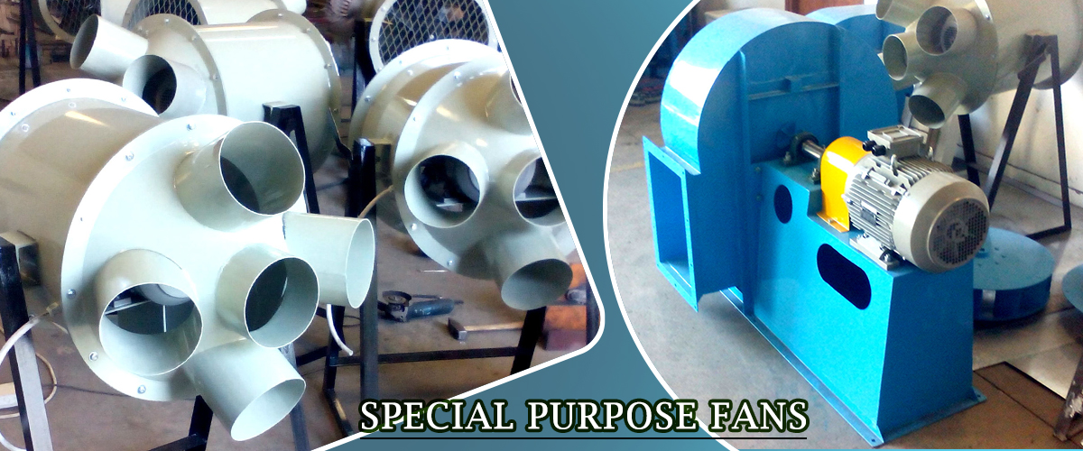 We are an engineering company that design and manufacture Axial flow fans, Centrifugal blowers, Ventilating fans (wall mounted and roof mounted), In-line ducted fans, Bifurcated fans (high temperature applications), Dust collection system, Fume extraction system, Cyclone separator, Heat extraction system, Ventilation system, Paint booth and Kitchen exhaust system. The fans we manufacture can be direct drive or belt drive and fabricated with materials as per customer requirement. We undertake turnkey projects and repair work for blowers, impellers etc.